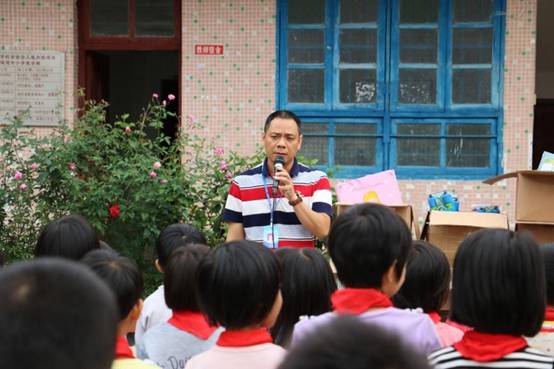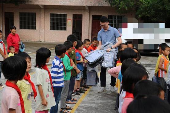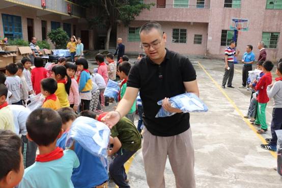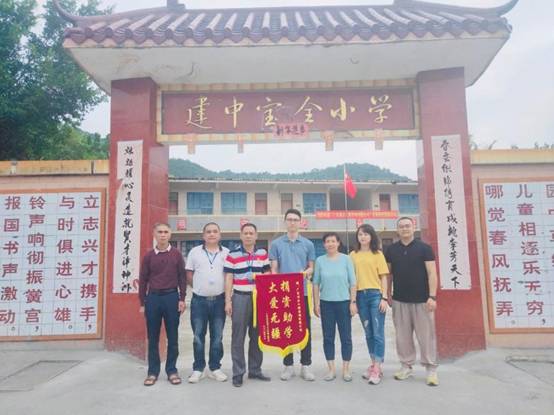 早上九点,我们带着一如既往的初心从公司楼下出发, 从广州前往肇庆广宁县石咀镇。经过连续不断的蜿蜒山路,三个多小时后我们到达了石咀镇。石咀镇,这个我们来了三年的地方,感觉是那么的熟悉,从镇上到周围的村庄都能看到小学生的身影。为了不打扰学生休息,我们选择下午14:00到达建中小学。此时已经有学生陆续返校,见我们到来,学生们打开了校门,不约而同喊着“欢迎欢迎”,脸上洋溢着欢欣的笑容。建中村委、建中小学的校长、老师以石咀镇中心小学校长及副校长及学生们已集中等候,公司购买的打印机、书包、校服、体育用品、学习文具以及图书均摆放在教室门口的红旗下。根据学校的安排,现场举办了简单而有意义的捐赠仪式,为感谢公司的捐助,校长还赠送了 “大爱无疆,捐资助学” 的锦旗。