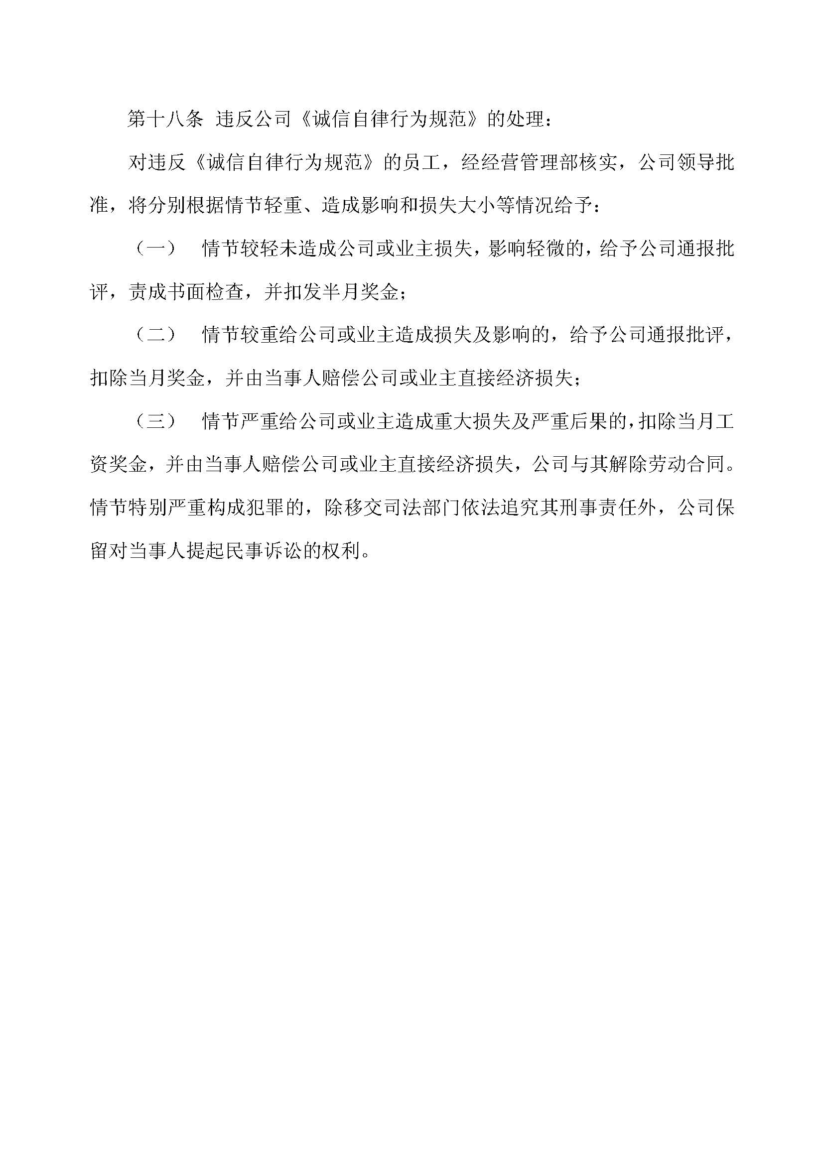 第十八条 违反公司《诚信自律行为规范》的处理: